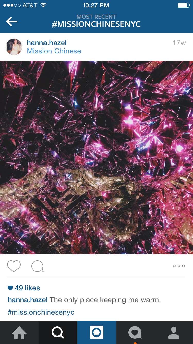 Rock Face, 2014. Mission Chinese restaurant 171 E. Broadway NYC