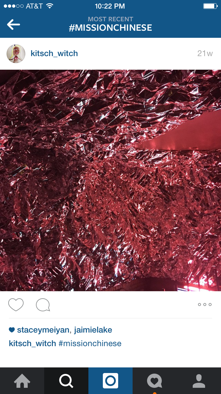 the inaugural installation for the reopening of mission chinese. An amorphous form made of mylar safety emergency blankets emulating rock formations or hoodoos found in ancient geo-structures and desert basins.